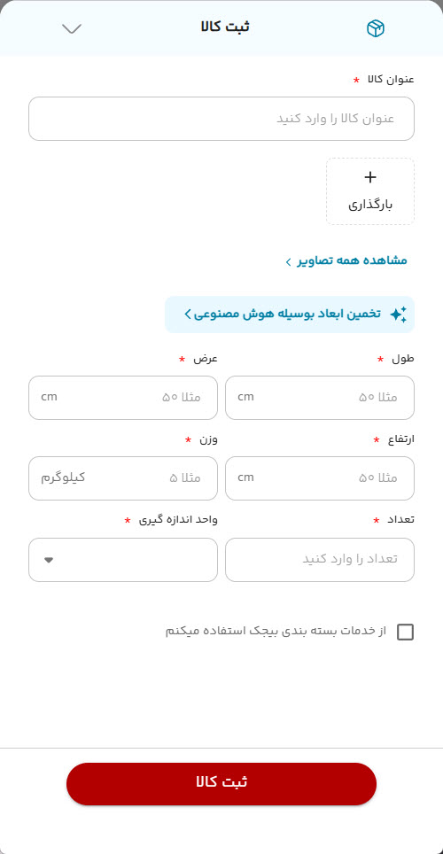 درخواست سرویس «بستهبندی حرفهای بیجک» برای ارسالهای بعدی؛ در این حالت، مسئولیت فیزیکی بار بهطور کامل به بیجک منتقل میشود.
