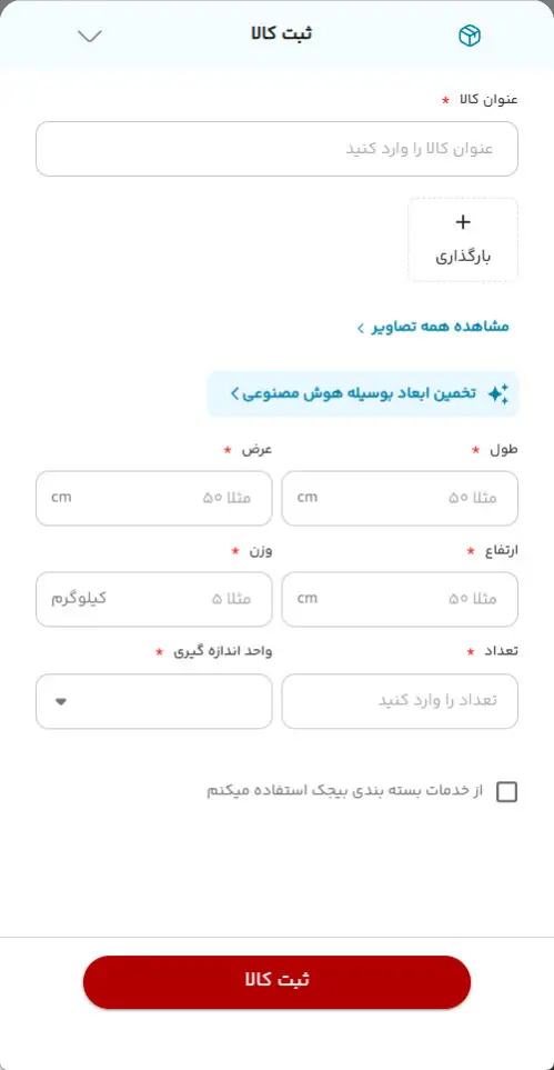 • ارزش کالا: هنگام ثبت سفارش در بیجک الزامی است؛ همین داده مبنای بیمه قرار می‌گیرد.